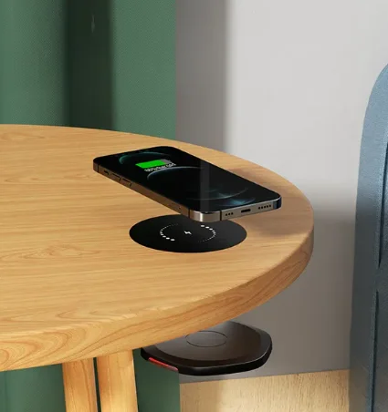 XE Wireless Charger is a simple yet sophisticated wireless charger that enables devices to charge by simply placing them on a work surface. Perfect for the home, office and public areas wirelessly charging, XE-Charge's compact design subtly attaches to the bottom of a desk or tabletop to keep mobile devicesd powered throughout the day. An invisible solution that does not affect the design of the furniture. Wiressly charge up to 10W/15W power.